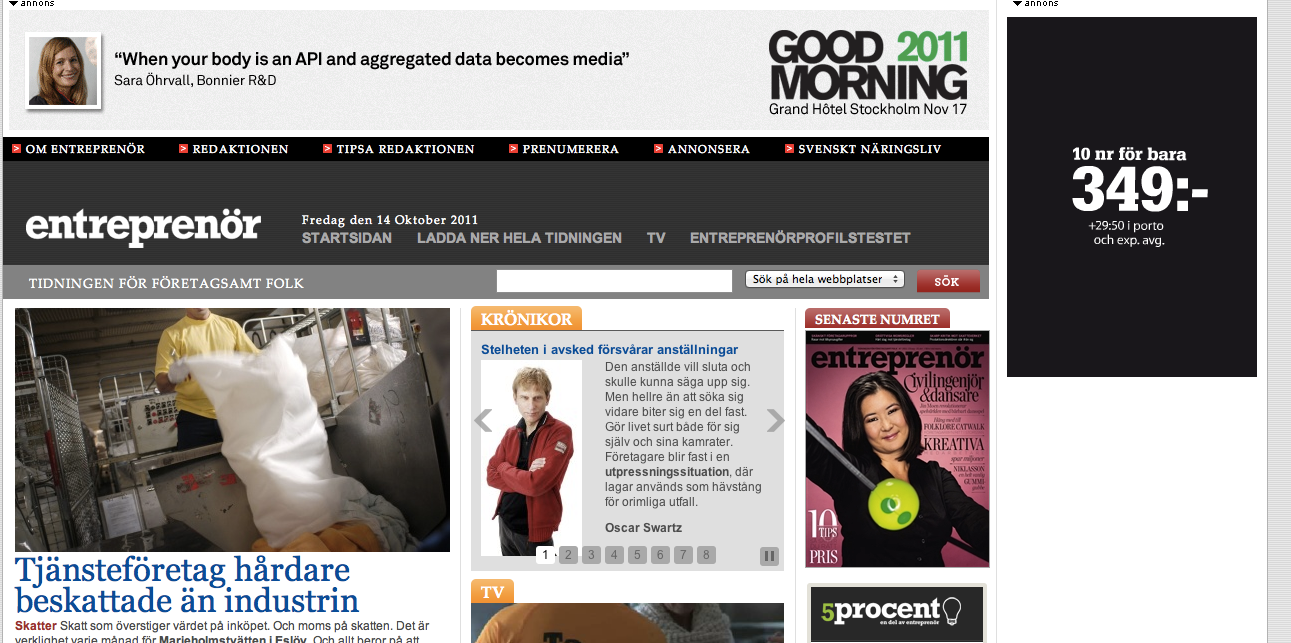Good Morning 2011 är Stockholm School of Entrepreneurship's årliga internationella event om framtidstrender, entreprenörskap och innovation. Med en övertygelse om att de bästa idéerna föds i interdisciplinära sammanhang, samlar vi "future thought leaders" och visionärer från många olika bakgrunder och discipliner att dela med sig av sina erfarenheter och kunskaper. Utöver tankeväckande presentationer och intressanta seminarier erbjuder vi ovärderliga nätverksmöjligheter. Eventet attraherar årligen över 600 företagsledare, start-ups, entreprenörsstudenter och beslutsfattare från näringslivet.